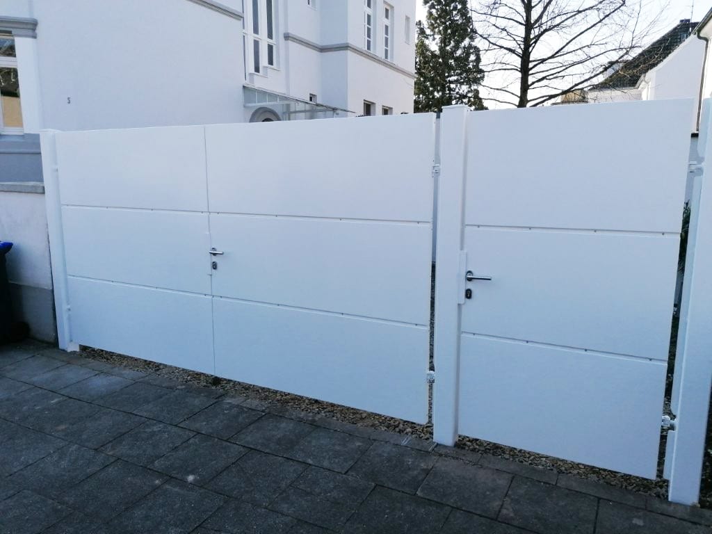 Weiß pulverbeschichtete Toranlage